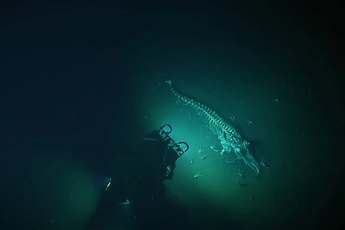 Najčešće, kada istraživači naiđu na ostatke, oni su već godinama na morskom dnu. Međutim, ovaj primjerak, otkriven na dubini od 3.238 metara u Nacionalnom morskom rezervatu Monterey Bay u Kaliforniji, djeluje relativno „svježe“, prenosi Nova.