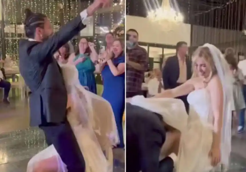 Htjeli su da budu kul, a ispali su baš krindž. U želji da ispoštuju običaj skidanja podvezice zubima, koji je čest u Sjedinjenim Američkim Državama i zapadnoj kulturi generalno, mlada i mladoženja su se poprilično zanijeli, pa je svadba na trenutak zaličila na noćni klub u kom se gube sve kočnice i inhibicije u ponašanju.